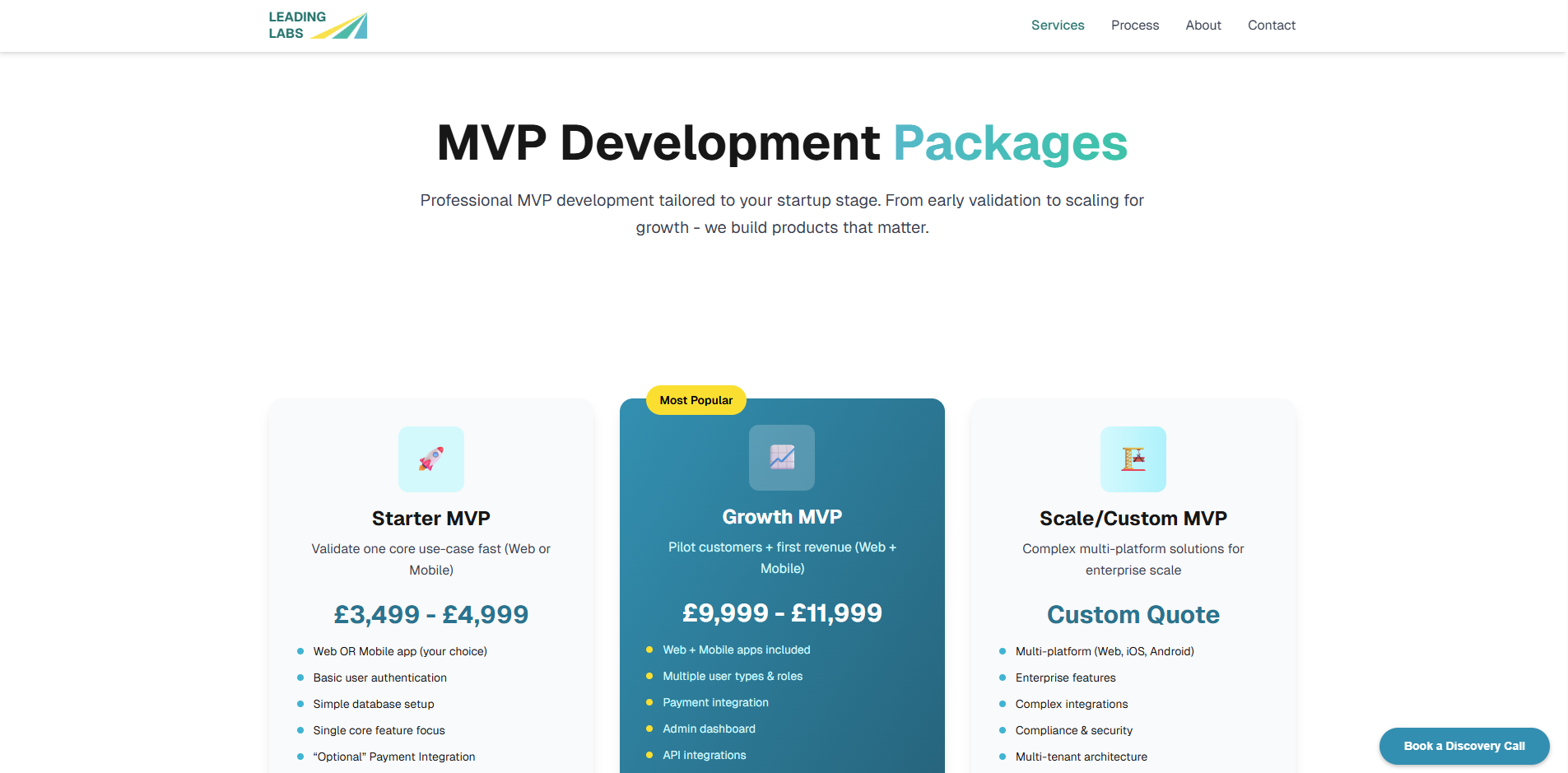 We created Leading Labs as a specialized MVP agency with transparent, fixed pricing and guaranteed delivery timelines. Using modern tech stacks and streamlined processes, we help founders validate ideas and launch products in weeks instead of months.